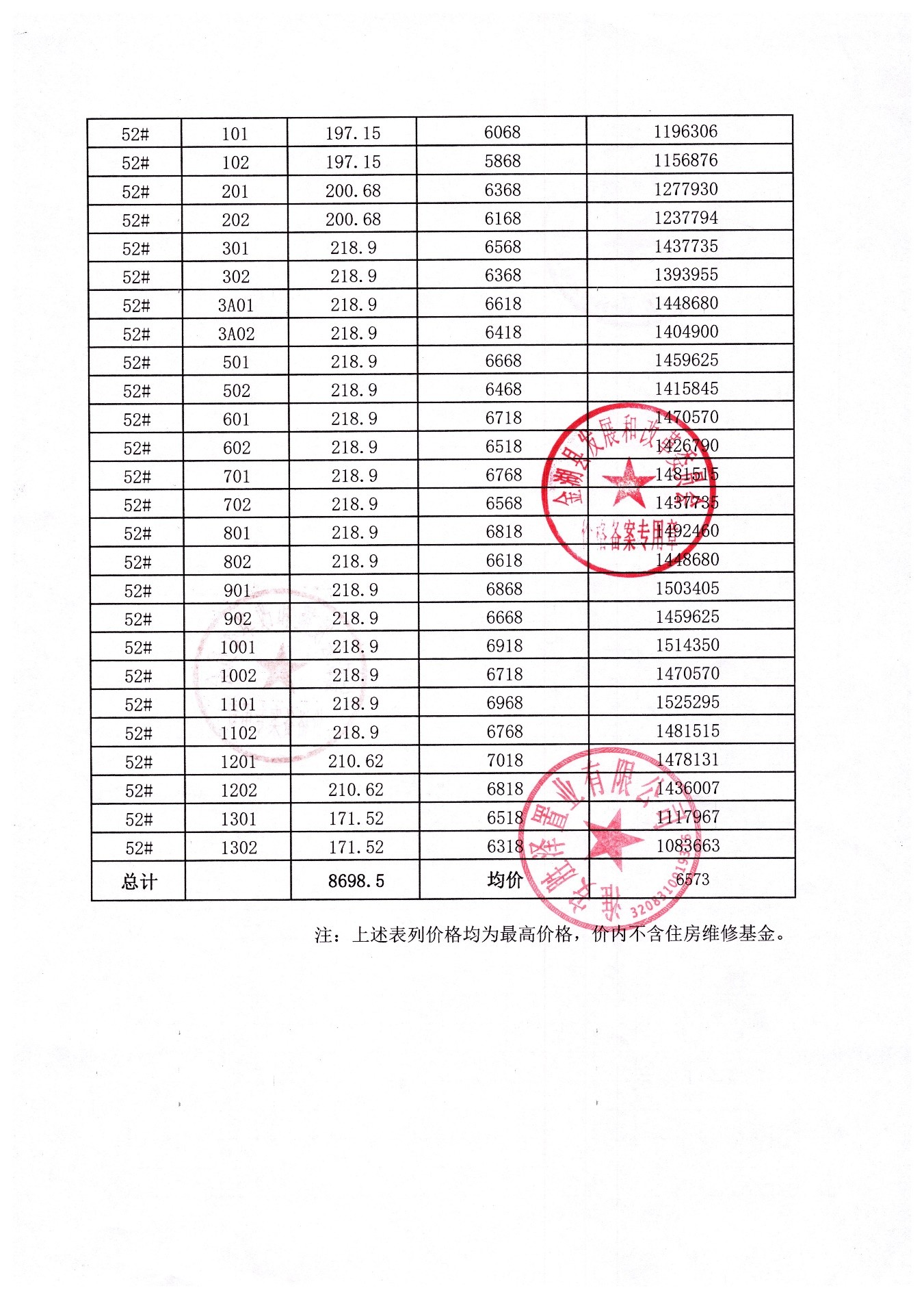 金湖县普通商品住房“一房一价”价目表50#、52#.xls