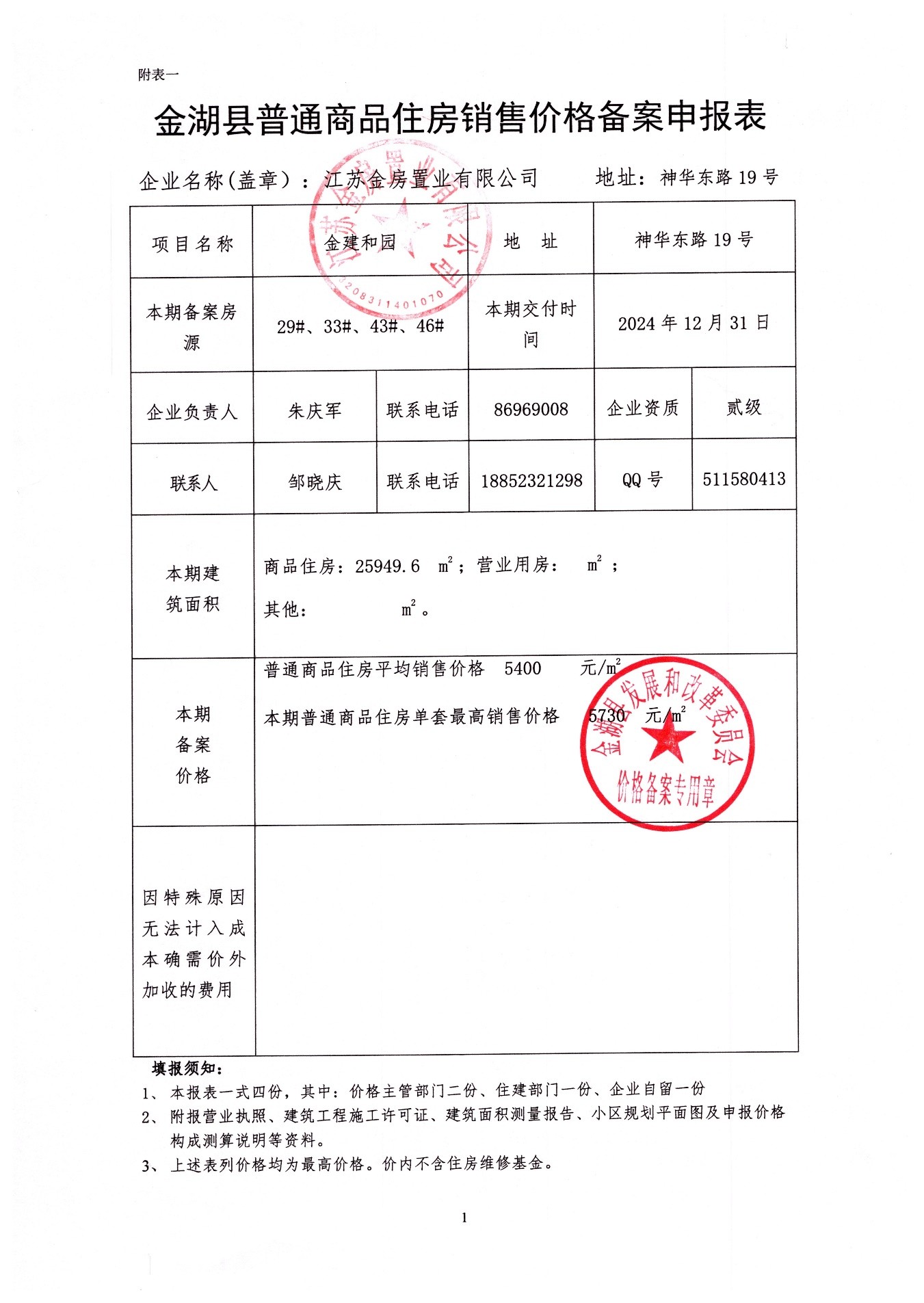 金湖县商品房销售价格备案申报表新.doc