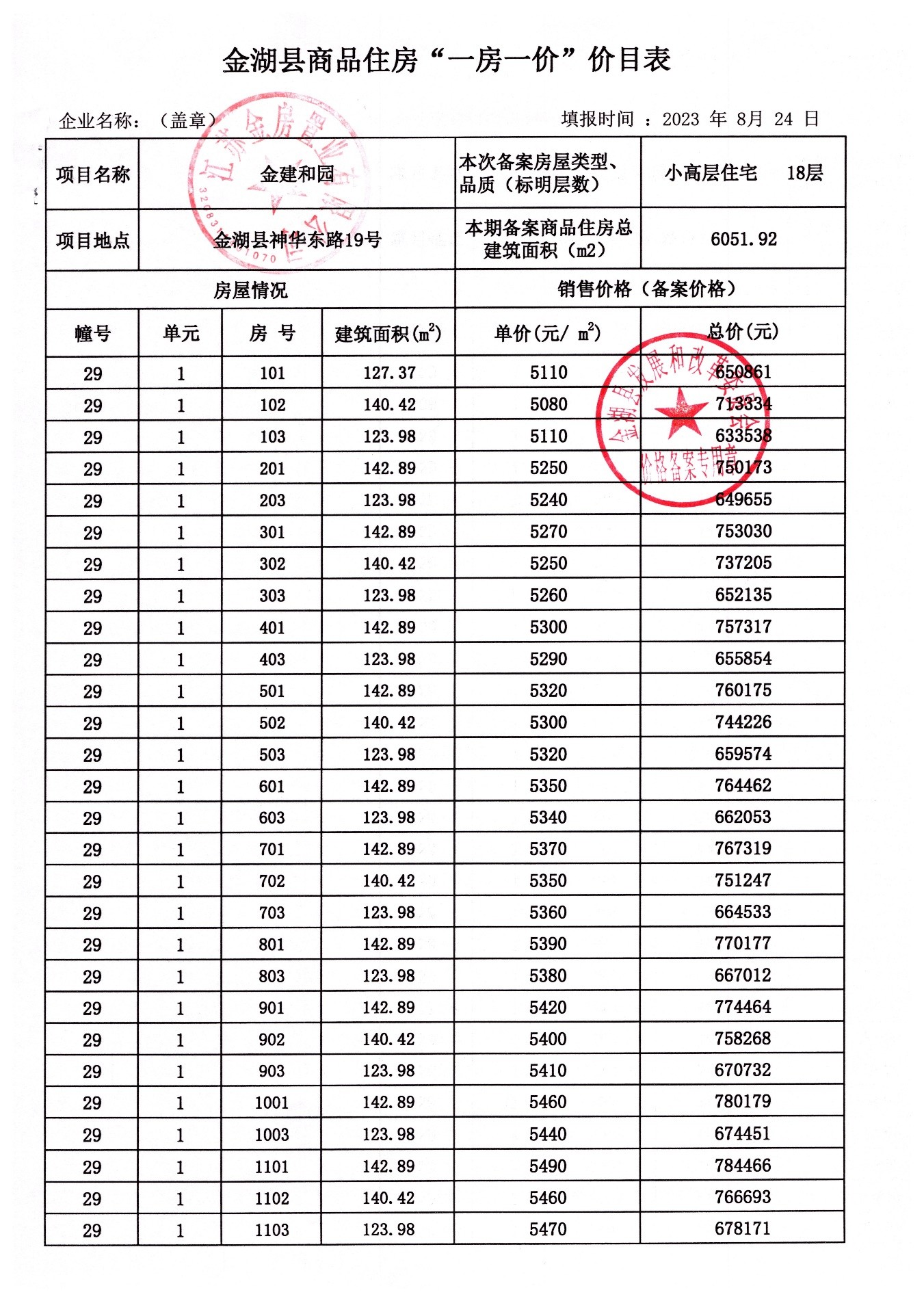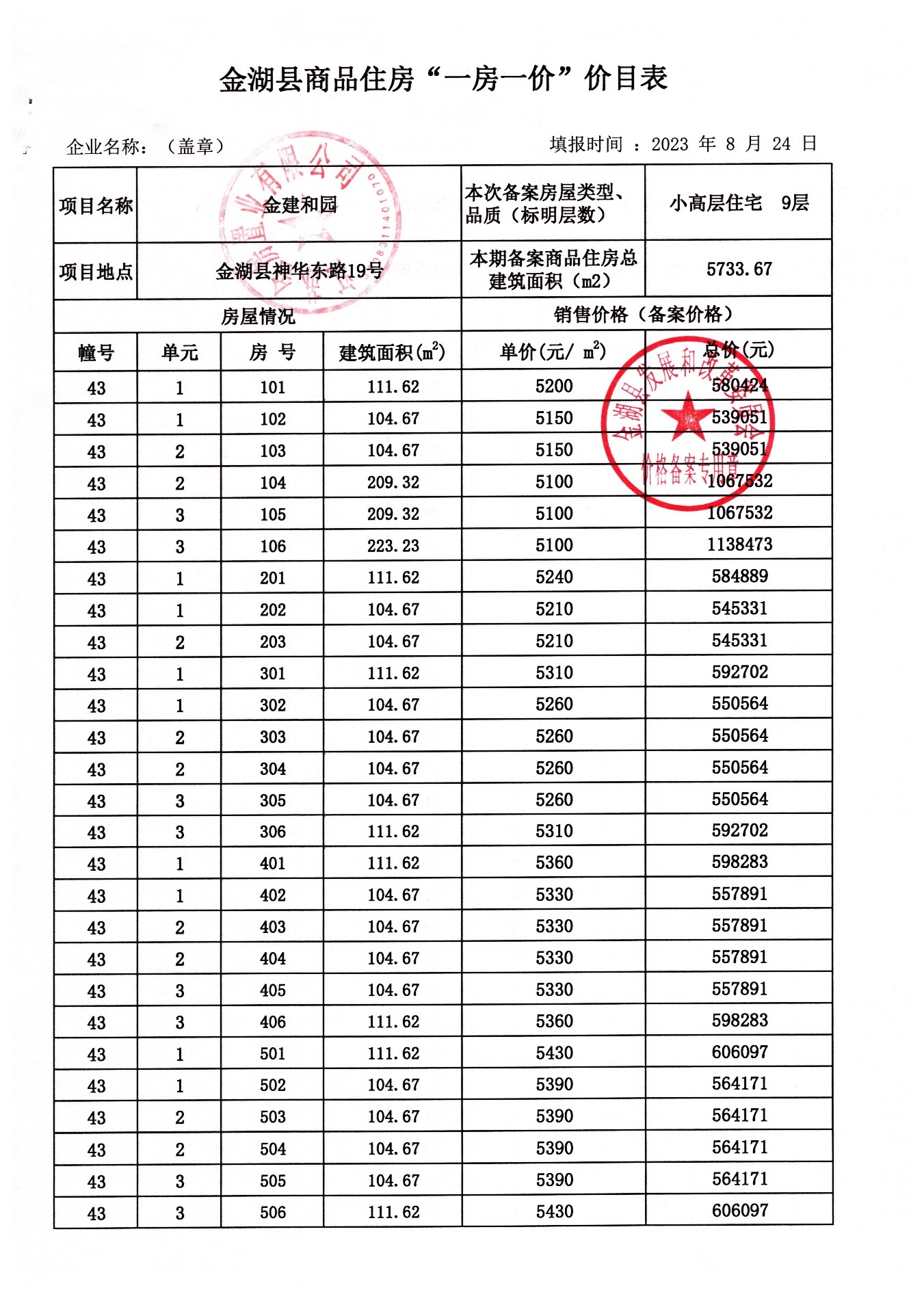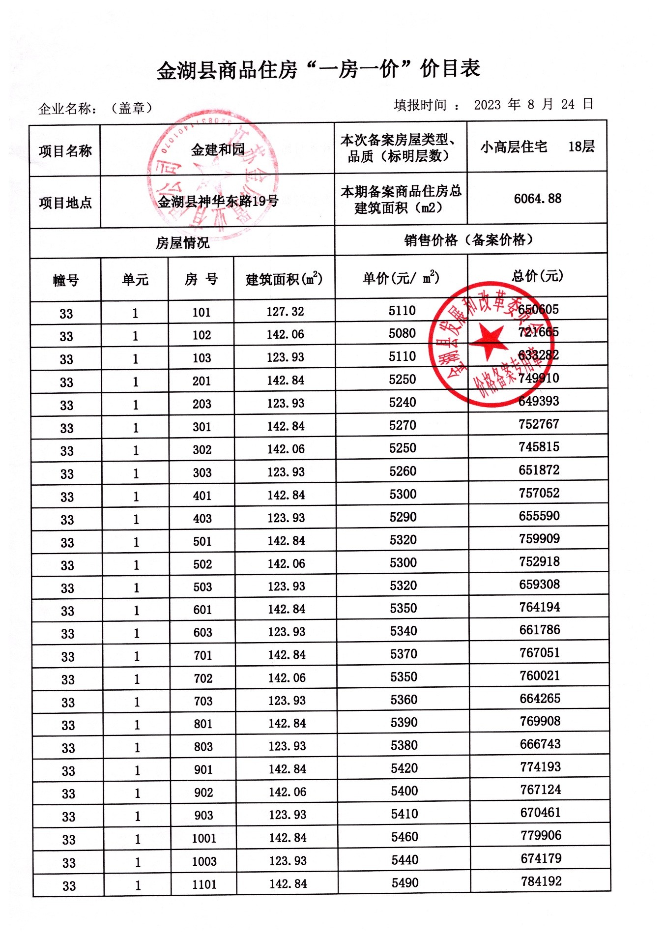 金湖县普通商品住房“一房一价”价目表.xls