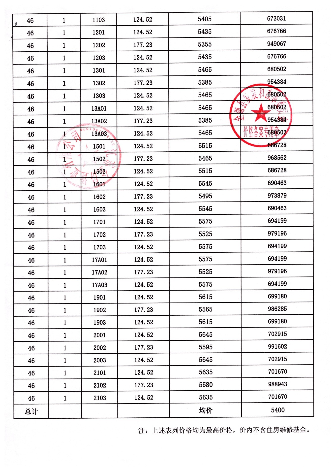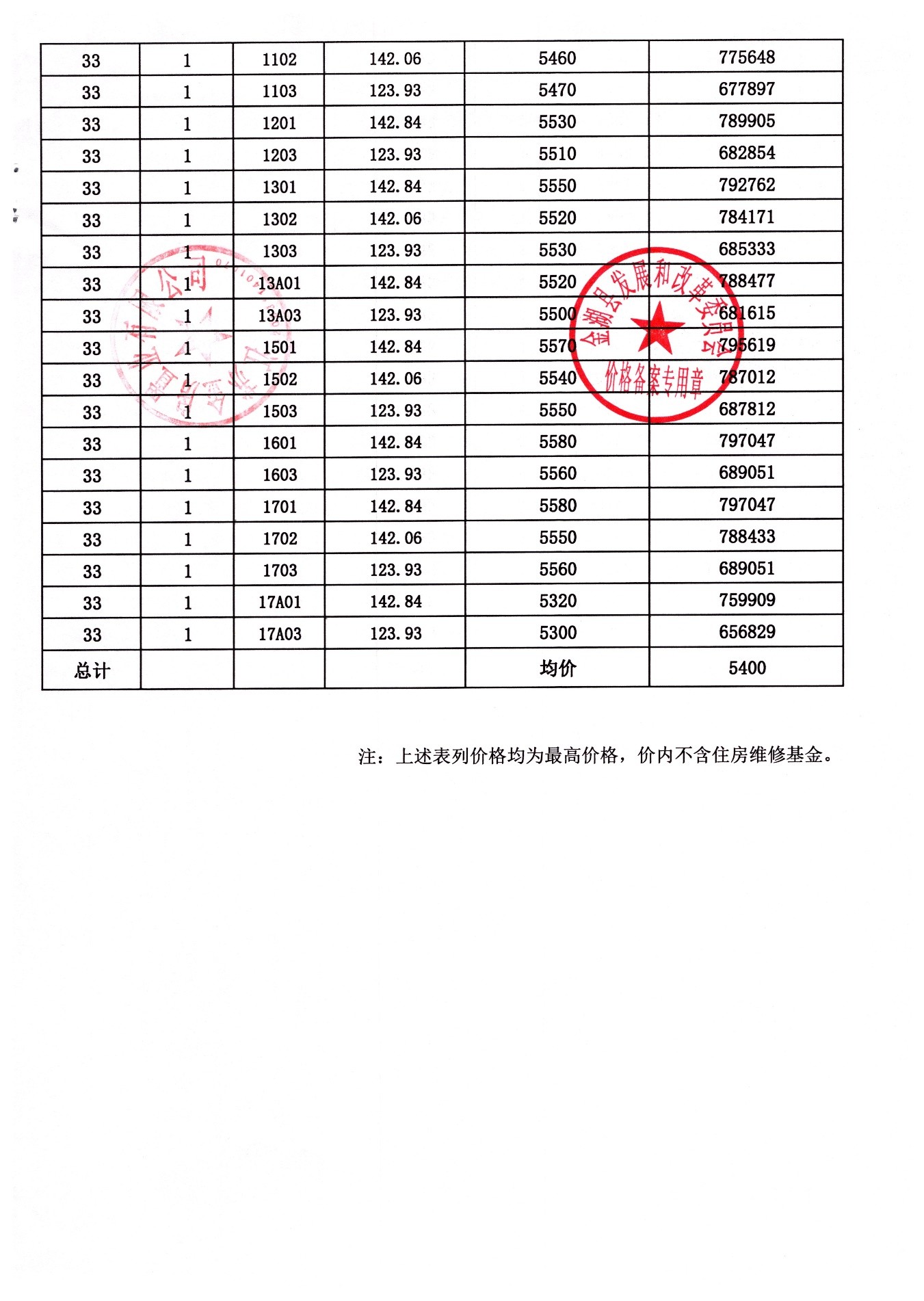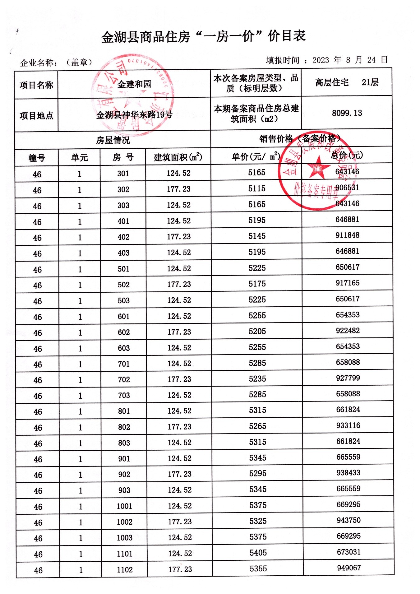 金建和园(29#、33#、43#、 46#)楼盘备案价格的公示